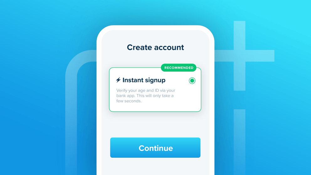 Signup+ uses bank-sourced identity data through open banking to verify a customer’s name, address and date of birth to speed up KYC-compliant onboarding. With just one quick deposit, new customers can get started gaming, add funds to their wealth management app or buy crypto right away. There are no manual forms to fill out, no document scanning and no waiting days for verification checks. With Signup+, onboarding is simple: