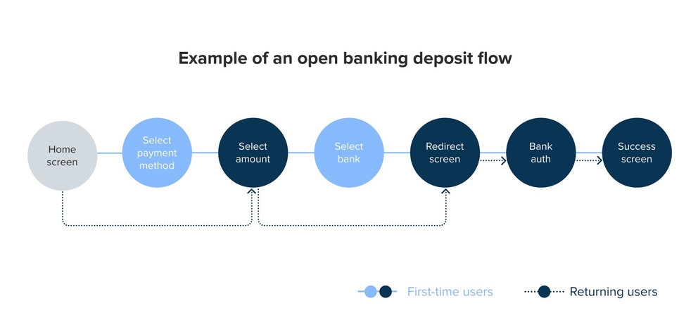 Users making an open banking deposit for the first time require a different approach compared to someone who’s done it before. And the numbers back this up: returning users are 20% more likely to choose open banking compared to first-timers. They trust it because they’ve already used it.On the other hand, new users need a few more nudges to increase their trust and confidence before they commit to open banking as an option.So, let’s look at the best UX practices for every screen a first-time user encounters