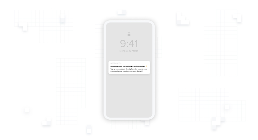 If your app allows for it, an existing user has likely already set a default payment method which they’ll use without a second thought. So how do you draw their attention to a new and improved option?The answer here is simple: createmore entry points.General announcementsSystem banners and push notifications are effective ways of letting your users know about open banking deposits. Alternatively, you could run an email campaign and create social shout-outs. You know best what channels work for your users, just make sure to get the message out there: open banking is here — and it’s instant, secure, fee-less and really easy to use.